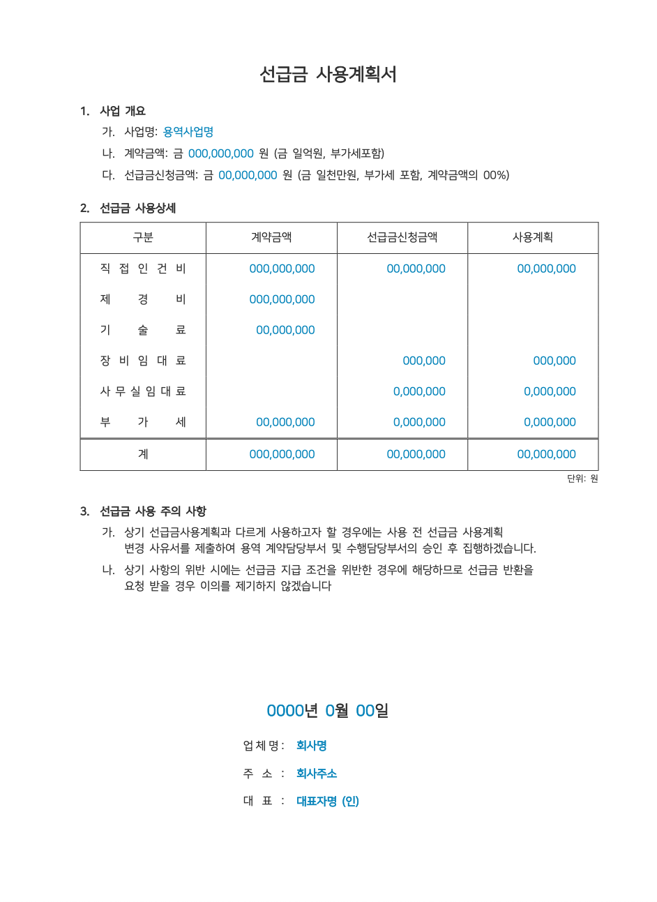 어쨌든 위 조항에 따라서 선급금 신청이 필요하여 관련 문서를 만들어봤습니다.